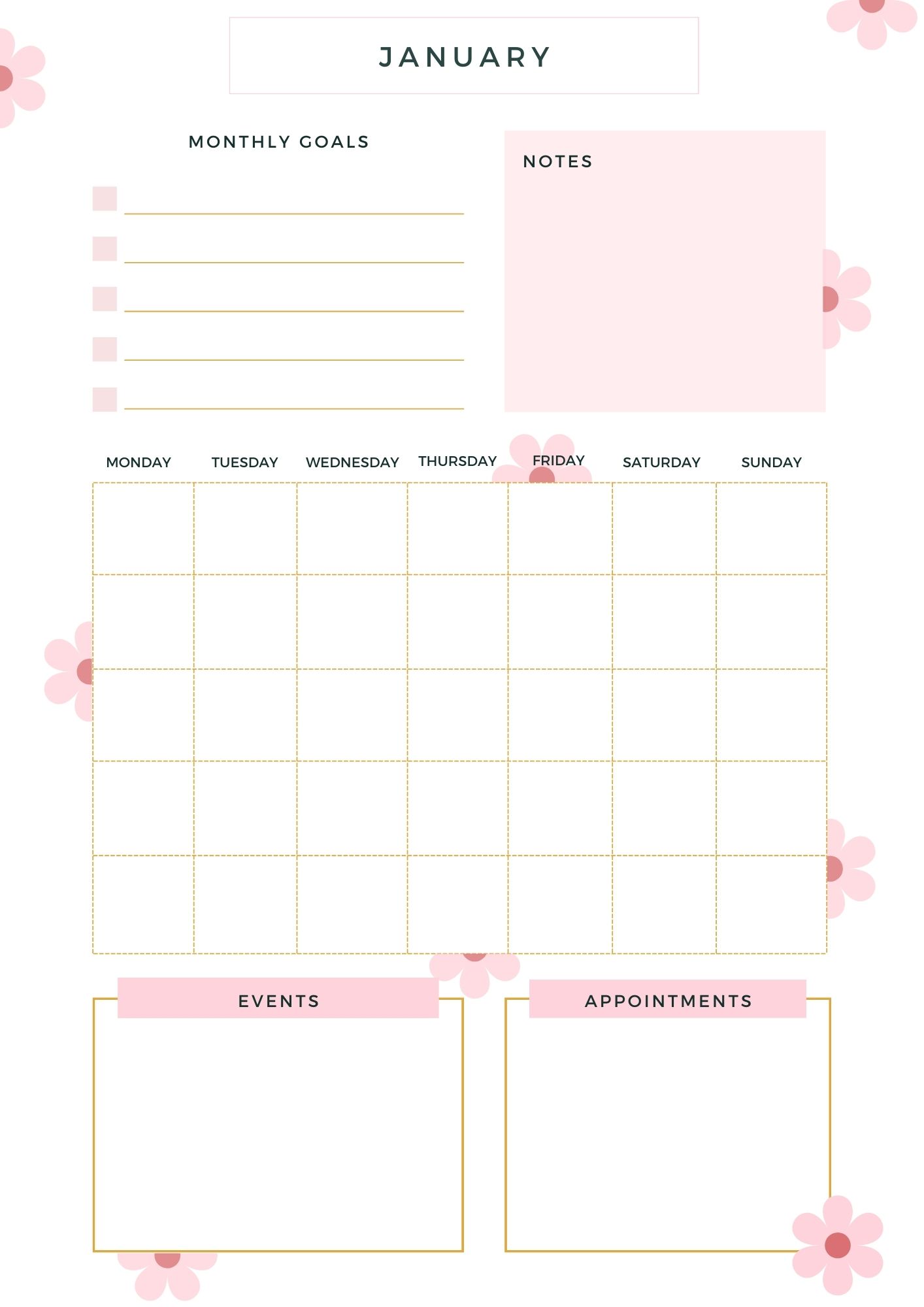 - Monthly Goals